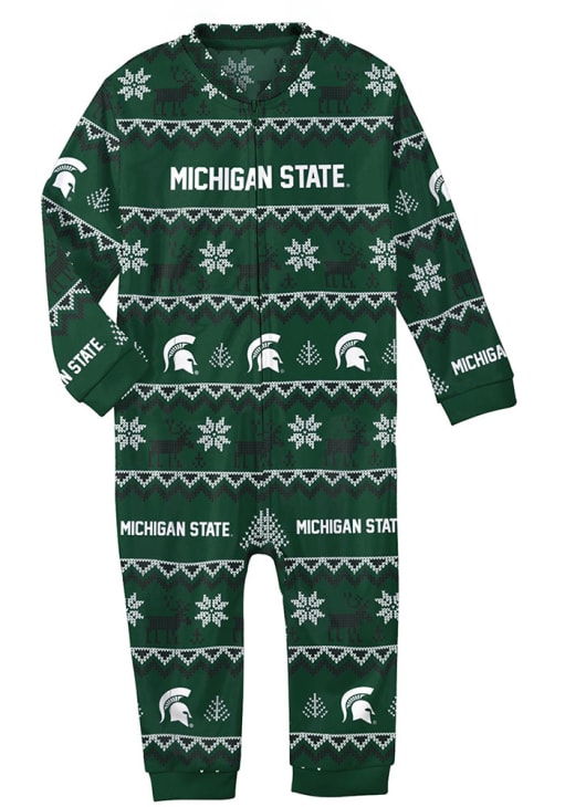 Get your little Michigan State Spartans fan ready for sweet dreams of gameday with this Green Baby One Piece Pajamas Loungewear! This One Piece Pajamas Loungewear features a printed ugly sweater graphic all over and is ready to be sported by a little fan.