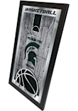 Product Details Product Details Vibrant, full color artwork1/8" glass with Mirrored Accents15" x 26" matt black wood frameSaw-tooth hanger for easy hangingGreat gift for any occasion!USA Officially Licensed This Michigan State Spartans Basketball Hanging Back Bar Mirror is a great addition to show your Spartans pride. A great match to the game room bar, this Back Bar Mirror features a team logo that will be sure to draw attention to your fan cave.