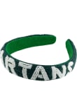 Product Details Product Details Hidden Pliable Plastic FormGlass seed beads2.5" fabric span at its widest pointStretchable and comfortable Officially Licensed Take your gameday 'fit to the next level with this Michigan State Spartans Beaded Womens Headband from Rally House! Show your Spartans pride with this Headband featuring a team colors and team logo.
