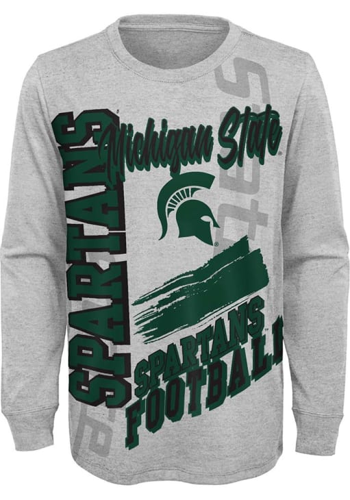 Support for your favorite team in this Boys Grey Michigan State Spartans Game Day Vibes Long Sleeve T-Shirt! This T-Shirt features a screen print team graphic, so everyone will know your favorite team is the MSU! This is the perfect Michigan State Spartans Boys T-Shirt for wearing to game day or everyday. Go Spartans!