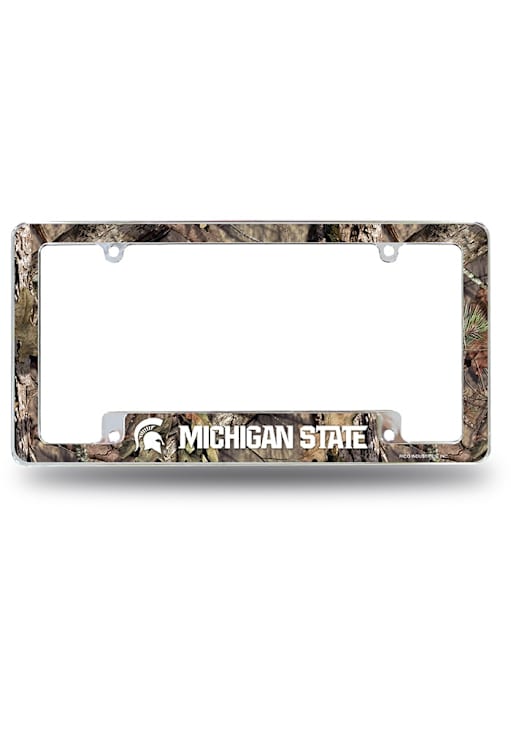 White Michigan State Spartans Camo Mossy Oak All Over Chrome License Plate Frame