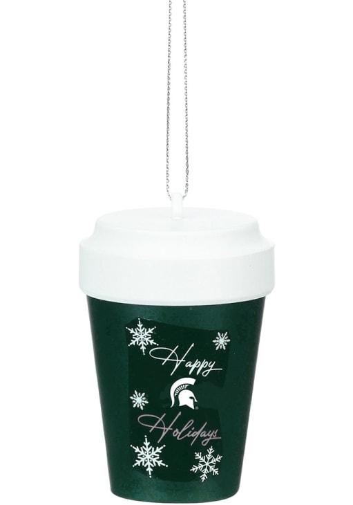 Product Details Product Details Festive coffee cup ornamentFeatures team colors and team logoMeasures approx 3 inComes ready to hangMakes for a great gift Officially Licensed Decorate your Spartans tree this holiday season with this Michigan State Spartans Coffee Cup Ornament. Add MSU features to your holiday cheer. This Ornament features a festive design with team logo and team colors. Go Spartans!