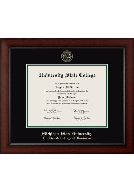 Michigan State Spartans Embossed Paxton College of Business Diploma Frame is a great way to keep your Spartans memories close. You'll love looking at your favorite Spartans moments with this Diploma Frame, which features a Showcase for your university diploma frame. Go Spartans!