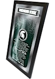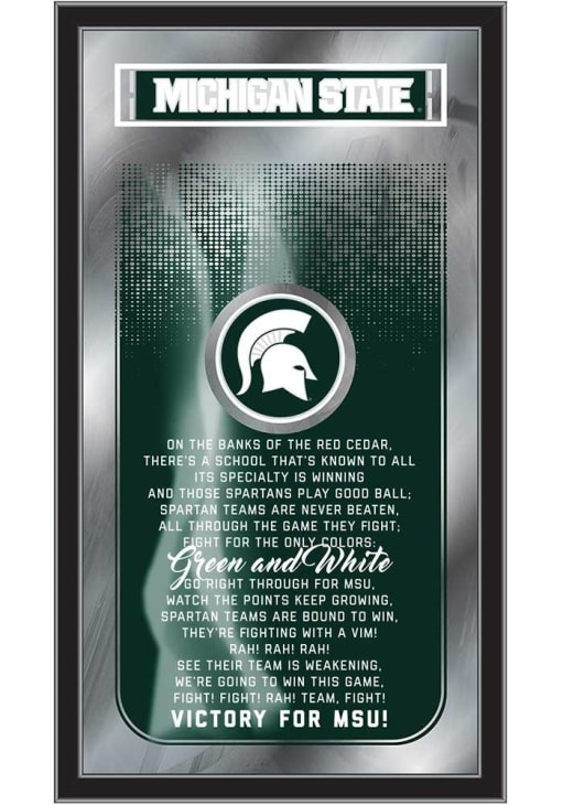 Product Details Product Details Vibrant, full color artwork1/8" glass with Mirrored Accents15" x 26" matt black wood frameSaw-tooth hanger for easy hangingGreat gift for any occasion!USA Officially Licensed This Michigan State Spartans Fight Song Hanging Back Bar Mirror is a great addition to show your Spartans pride. A great match to the game room bar, this Back Bar Mirror features a team logo that will be sure to draw attention to your fan cave.