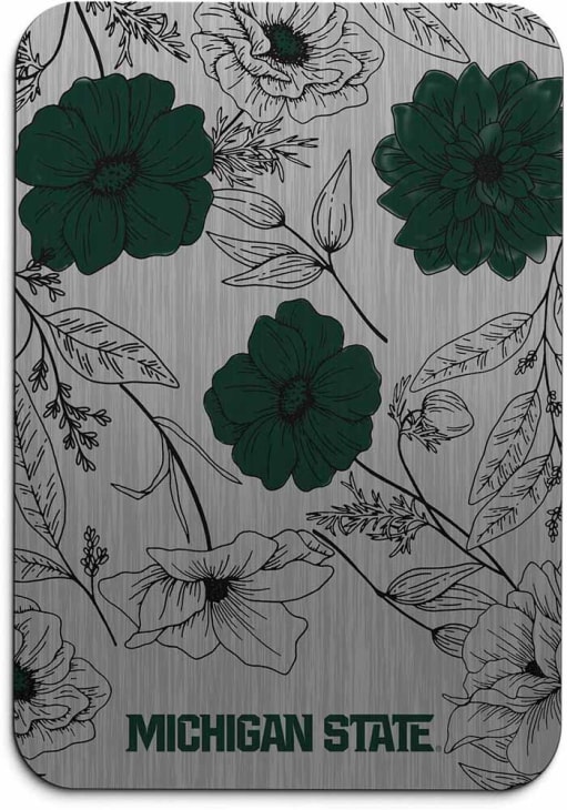 Product Details Product Details 7x10 inBrushed aluminum surfaceUltra-smooth trackingEnhanced accuracyBold team logo Officially Licensed Show your Spartans pride to all of your co-workers with this Michigan State Spartans Floral Mousepad. This Mousepad features a team logo, which will look great on your desk at home or at work.
