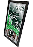 Product Details Product Details Vibrant, full color artwork1/8" glass with Mirrored Accents15" x 26" matt black wood frameSaw-tooth hanger for easy hangingGreat gift for any occasion!USA Officially Licensed This Michigan State Spartans Football Hanging Back Bar Mirror is a great addition to show your Spartans pride. A great match to the game room bar, this Back Bar Mirror features a team logo that will be sure to draw attention to your fan cave.