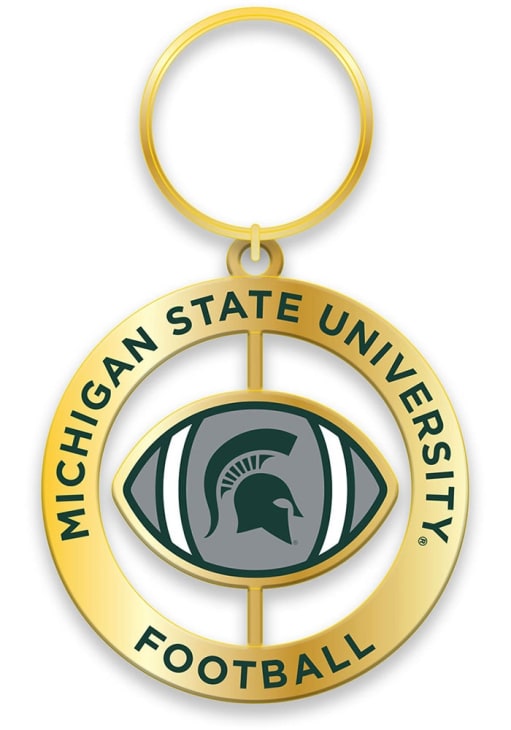Product Details Product Details Football themed team designSpinner centerComfortable everyday carryAttaches easily to keys, bags, or backpacksGreat for football fans and athletes Officially Licensed Keep your keys safe and show a little Spartans fandom everywhere you go with this Michigan State Spartans Football Spinner Keychain. This Keychain features a team color with team logo. Go Spartans!