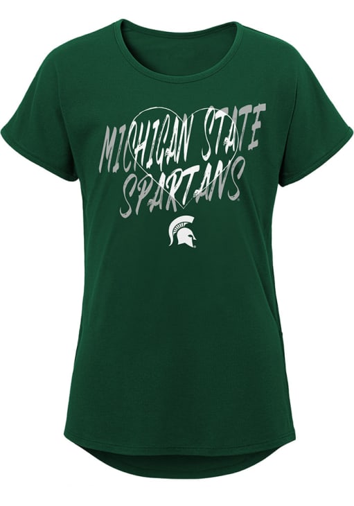 Size Chart for Girls Green Michigan State Spartans Slogan Heart Short Sleeve T-Shirt