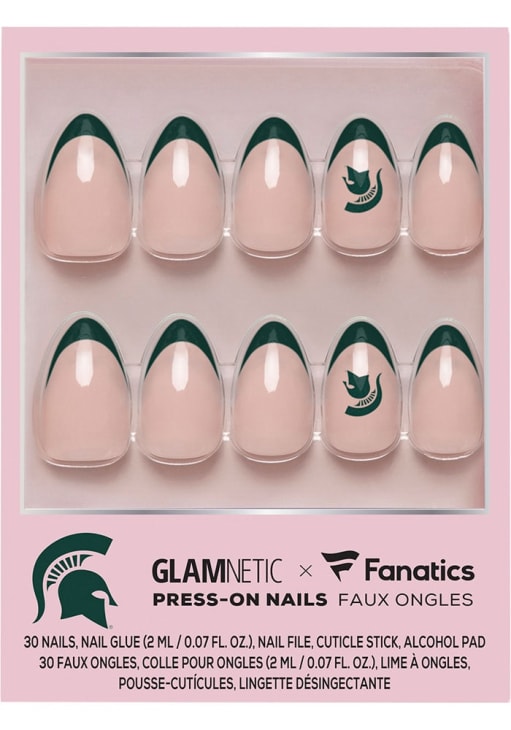 Product Details Product Details Stylish team-themed press-on nail designsEasy to apply without salon toolsComfortable, lightweight wearRemovable and reusable with proper careGreat for gamedays, events, and fan looks Officially Licensed Show your Spartans pride and get ready for that next big game with this Michigan State Spartans Cosmetics. This Spartans features a team color with team logo.