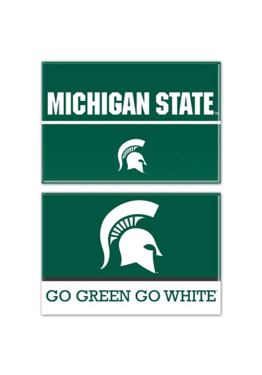 Product Details Product Details Measures: 2"x 3" (each magnet)Bright, full-color printed graphicsTeam logo in team colors2 in a packPerfect way to display your team pride!PLASTICUSA Officially Licensed Showcase your MSU Spartans spirit on your fridge at work or at home with this Michigan State Spartans Go Green 2pk Magnet. This Magnet features a pair of seperate team logo designs.