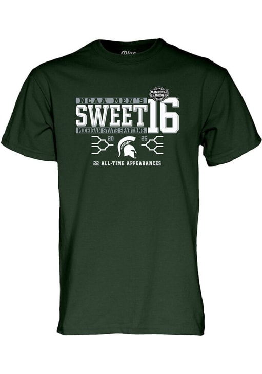 Display your team spirit with this remarkable Michigan State Spartans Blue 84 Green 2025 MBB Sweet 16 Short Sleeve T Shirt! The MSU Short Sleeve Tee showcases a screen print team and event graphic across chest that truly sets it apart. Stand out from the crowd and proudly declare your allegiance to the Spartans with this exceptional Green MSU T Shirt. Go Spartans!