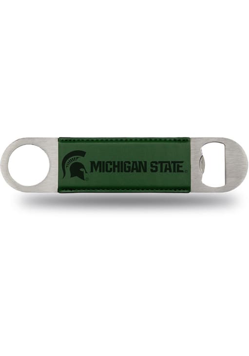 Show your Spartans pride while opening a bottle of your favorite drink with this Michigan State Spartans Bottle Opener. This Bottle Opener features a team logo and team work mark laser engraved onto a leather team colored band. This Bottle Opener is a must-have for any Spartans fan's bar. Go Spartans!