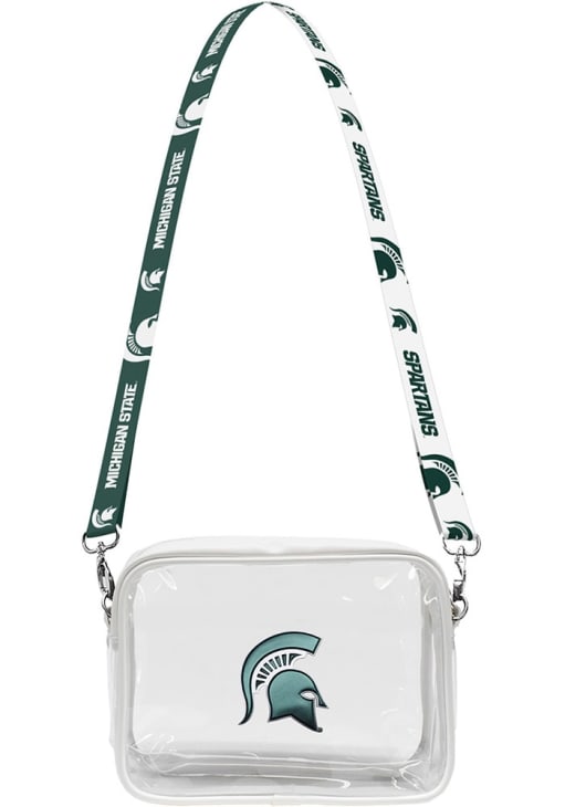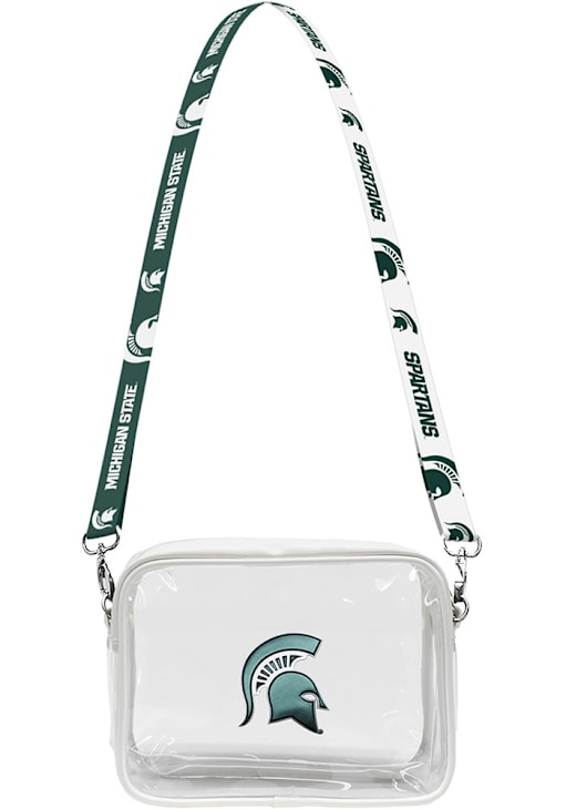 Product Details Product Details Complies with stadium policiesZipper closureCan be worn crossbody or over the shoulderL 5.5" x W 2.2" X H 7.5"Adjustable strap Officially Licensed Whether it's gameday or another occasion in the offseason, count on this Michigan State Spartans Fanny Fan Clear Tote from Rally House for your on-the-go needs! You'll love this Clear Tote that features a clear bag with team logo and team colors.