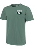 Display your team spirit with this remarkable Michigan State Spartans Green Mascot Short Sleeve T Shirt! The MSU Short Sleeve Tee showcases a Screen Printed Design that truly sets it apart. Stand out from the crowd and proudly declare your allegiance to the Spartans with this exceptional Green MSU T Shirt. Go Spartans!