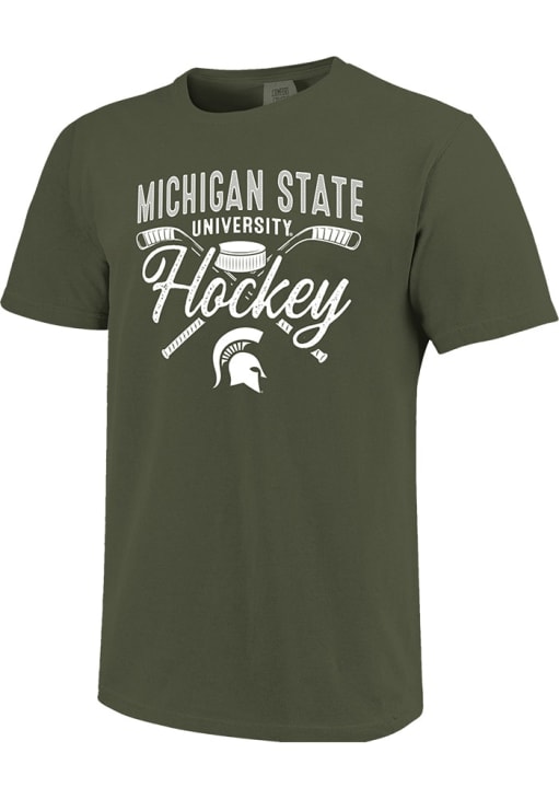 Display your team spirit with this remarkable Michigan State Spartans Green Pucks & Sticks Short Sleeve T Shirt! The MSU Short Sleeve Tee showcases a Screen Printed Design on Front Left Chest and Back that truly sets it apart. Stand out from the crowd and proudly declare your allegiance to the Spartans with this exceptional Green MSU T Shirt. Go Spartans!