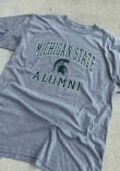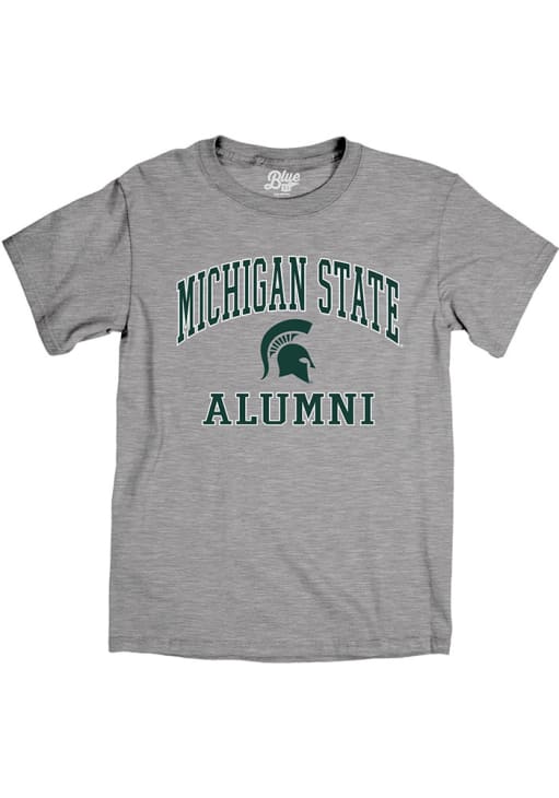 Display your team spirit with this remarkable Michigan State Spartans Blue 84 Grey Alumni Design Short Sleeve T Shirt! The MSU Short Sleeve Tee showcases a screen print of Michigan State with Alumni and team logo on center chest that truly sets it apart. Stand out from the crowd and proudly declare your allegiance to the Spartans with this exceptional Grey MSU T Shirt. Go Spartans!