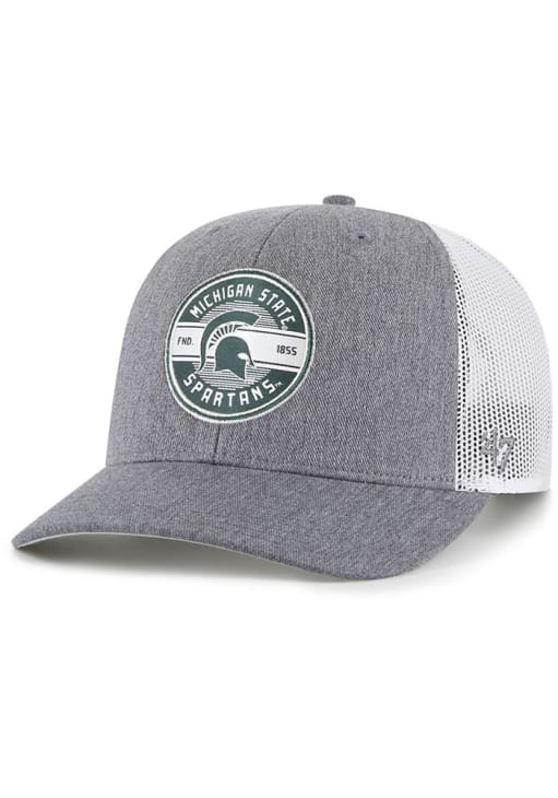 Product Details Product Details 47 Hash Mark TruckerFront team circle patchContrast MeshbackSide 47 LogoTeam color undervisorCOTTON/POLY BLENDCurved BillLow CrownLightly StructuredWipe clean with cloth or cleaning kitImported Officially Licensed This Charcoal Spartans Adjustable Hat features a team logo.