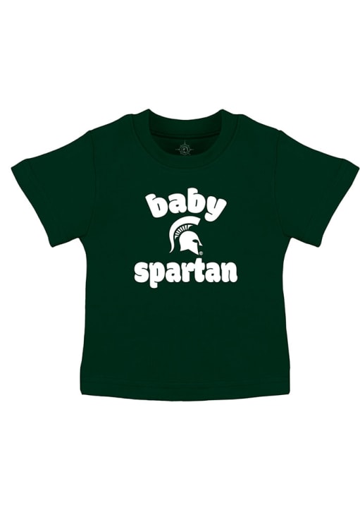 Every future Michigan State Spartans fan need a Green Infant Short Sleeve Tee. This Baby Mascot T-Shirt features a "Baby Spartan" screen print graphic.
