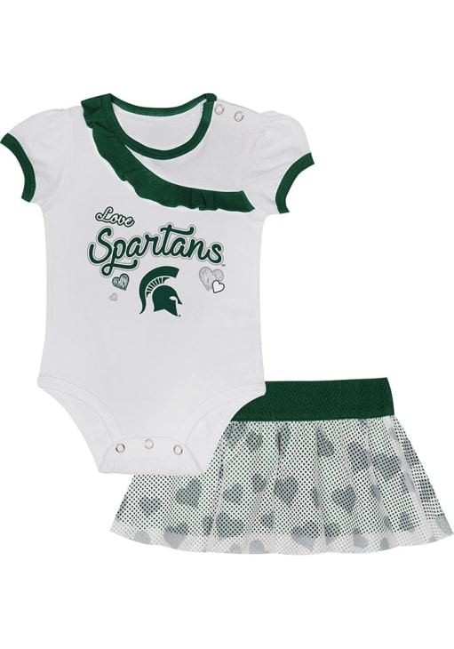 Get your little Michigan State Spartans fan gameday ready with this Green Infant Girls Top and Bottom Set! This Top and Bottom Set features a screen print team graphic and is ready to be sported by a little fan.