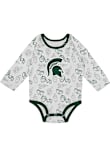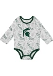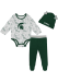 Get your little Michigan State Spartans fan gameday ready with this Green Infant Top and Bottom Set! This Top and Bottom Set features a screen print team graphic on creeper and hat and is ready to be sported by a little fan.