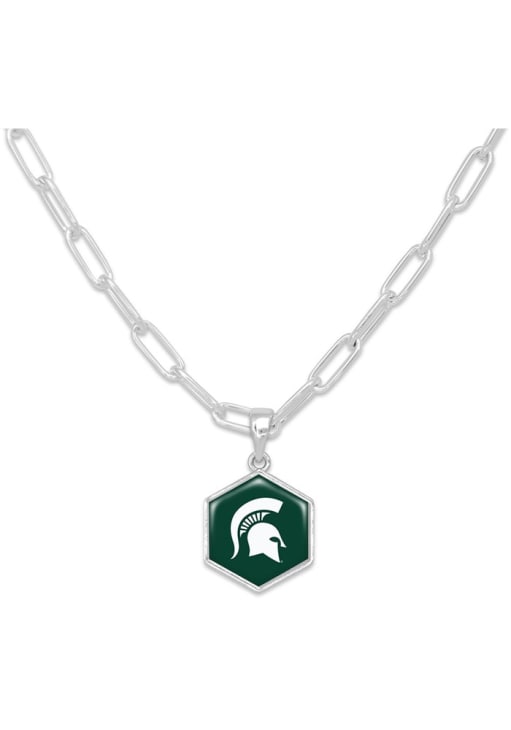 Product Details Product Details Bold color graphicsTeam color enamel logoPaperclip necklaceDurable materialShow your team spirit in style! Officially Licensed Make every outfit better with a touch of Spartans pride by getting this Michigan State Spartans Juno Womens Necklace from Rally House! You'll love wearing your Necklace, as it features a team logo.