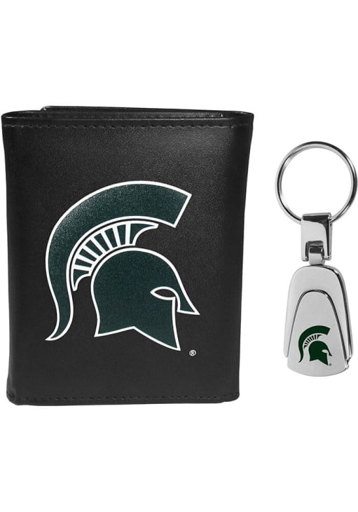 Product Details Product Details Genuine fine grain leather6 credit card slotsSmall pockets behind credit card slotsLarge billfold pocketWindowed ID slot Officially Licensed Secure your money while expressing Spartans pride with this Michigan State Spartans Leather Mens Trifold Wallet from Rally House. This high-quality Trifold Wallet features a matching steel key chain.
