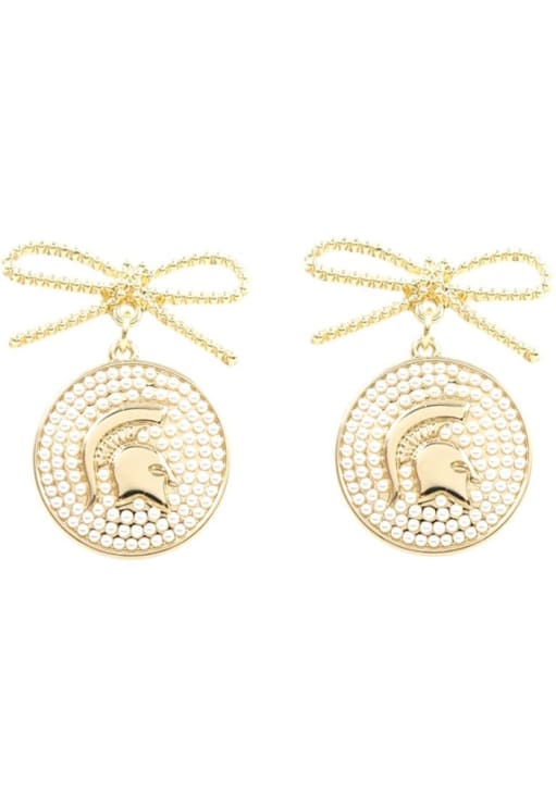 Product Details Product Details Pearl MedallionGold Team Logo with Bow TopFeatures gold plated BC trademark logo top Measures 1.5" in length Officially Licensed Stand out with these Michigan State Spartans Logo Pearl Bow Earrings from Rally House! Your dedication to the Spartans will shine with these Earrings featuring a team logo with pearls.