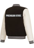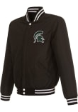 - Soft-to-the-touch polyester fleece body with a faux leather sleeves and nylon shell reverse side