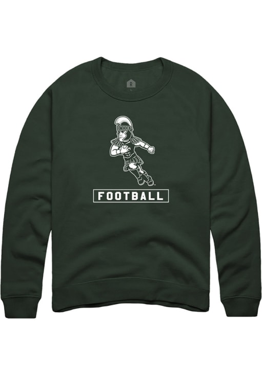 Gear up for the ultimate game day experience with this remarkable Michigan State SpartansMens Green Sparty Playing Football Crew Sweatshirt! Designed with the true fan in mind, this Spartans Long Sleeve Crew Sweatshirt features a screen print sport and mascot logo across chest. Stay warm and comfortable with this Mens MSU Spartans Crew Sweatshirt.
