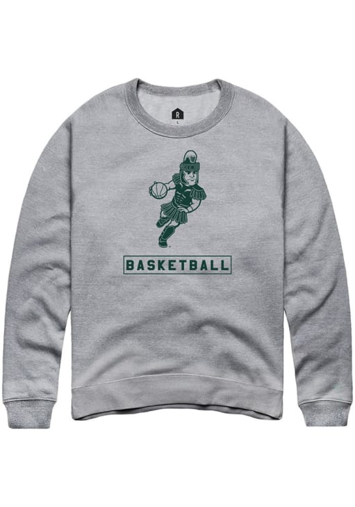 Gear up for the ultimate game day experience with this remarkable Michigan State SpartansMens Grey Sparty Playing Basketball Crew Sweatshirt! Designed with the true fan in mind, this Spartans Long Sleeve Crew Sweatshirt features a screen print sport and mascot logo across chest. Stay warm and comfortable with this Mens MSU Spartans Crew Sweatshirt.