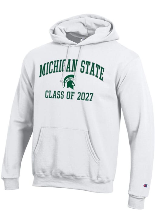 Mens Michigan State Spartans White Champion Font Class of 2027 Powerblend Hooded Sweatshirt