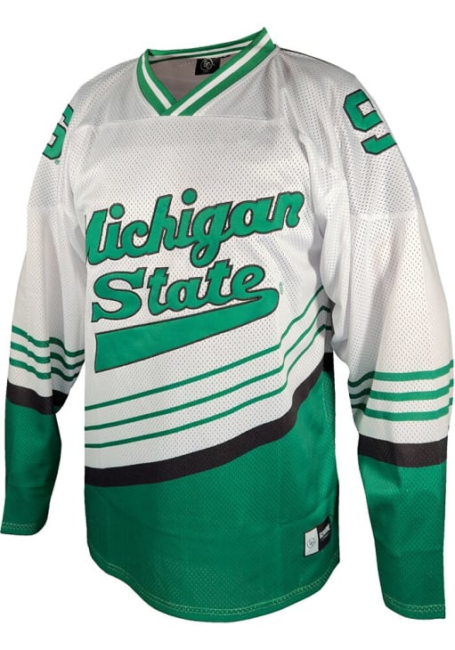 There will be no mistaking your MSU loyalty when you wear this Michigan State Spartans Mens White Vintage Replica Jersey! Look amazing on gameday in this Michigan State Spartans Hockey Jersey, which features a screen print team logo across chest.