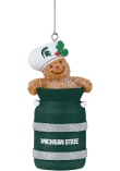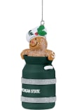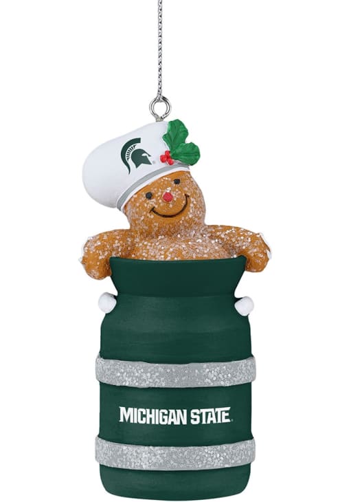 Product Details Product Details Ginger Bread inside of Milk JugFeatures team logo and team colorsMeasures approx 3 inMakes for a great gift Officially Licensed Decorate your Spartans tree this holiday season with this Michigan State Spartans Milk Jug Ornament. Add MSU features to your holiday cheer. This Ornament features a festive design with team colors and team logo. Go Spartans!