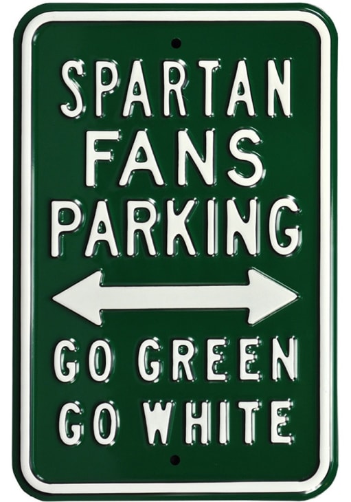 Product Details Product Details Measures 6" x 36"Deep embossed lettersHeavy 18 gauge steelFeatures team colorsMakes for a great gift100% SteelUSA Officially Licensed This Michigan State Spartans Parking Sign is great for decorating your home Spartans team spirit. Take your team spirit to the next level with this Sign, which features a Spartan Fans Parking, Go Green, Go White. Go Spartans!