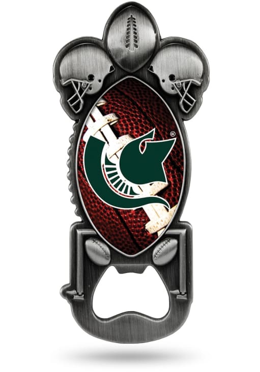 Show your Spartans pride while opening a bottle of your favorite drink with this Michigan State Spartans Bottle Opener. This Bottle Opener features a molded design, featuring helmets, goalposts, a football, and a football decal with team logo. This Bottle Opener is a must-have for any Spartans fan's bar. Go Spartans!