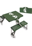 Product Details Product Details Portable seating for fourMaximum weight capacity is 250 lbs. per seat and 20 lbs. for the tableSturdy ABS plastic tableMolded polypropylene seats with a basket weave designIntegrated table in a folding compact Officially Licensed Showcase the Spartans style at your next tailgate with this Michigan State Spartans Portable Picnic Table. This Table features a team logo.
