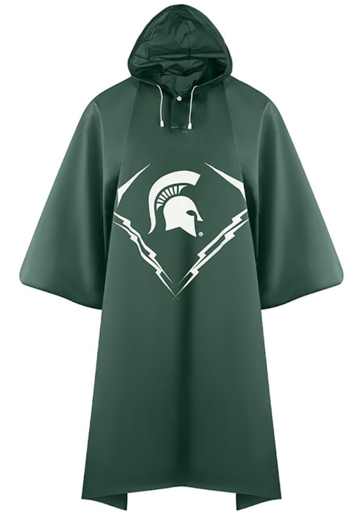 Product Details Product Details Team logo on front and backDrawstring hoodHeat-sealed seamsEasily stores in car or bagOne size fits most Officially Licensed The rain is never a problem for a Spartans fan when you have this Michigan State Spartans Premium Poncho. This Poncho features a team logo and team color.