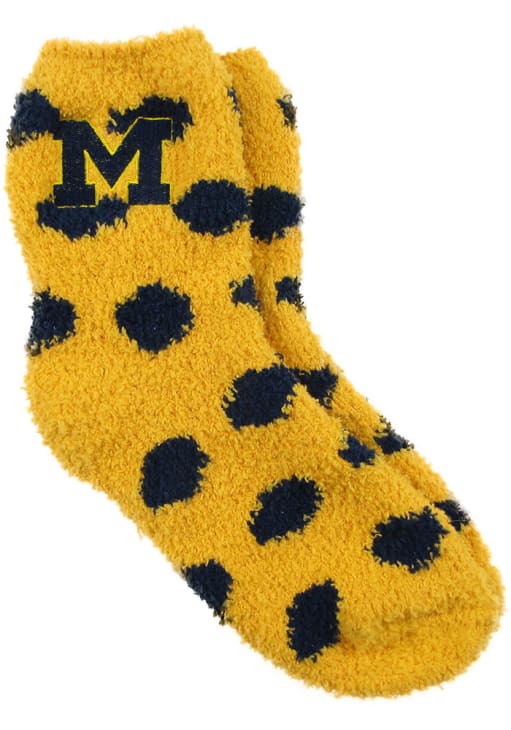 Product Details Product Details Embroidered team logo graphicsOne size fits mostPerfect for watching the big game at home99% Polyester/1% SpandexMachine washableImported Officially Licensed Make sure you're decked out with Wolverines spirit by getting these awesome Michigan Wolverines Reverse Fuzzy Dot Womens Quarter Socks! Rally House is sure you'll like these Quarter Socks featuring a team logo.