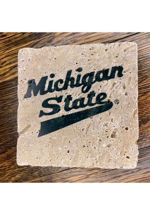 Green Michigan State Spartans Script Wordmark 4x4 Stone Coaster