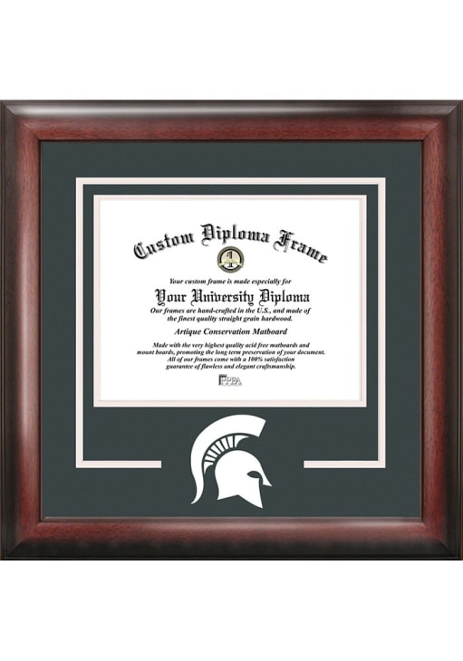 Product Details Product Details Laser-cut logoLogo artwork printed inside the cutoutMatboard compliments school colorsPremium wood mouldingIncludes dual hangers and a leveling kit Officially Licensed Michigan State Spartans Spirit Diploma Frame is a great way to keep your Spartans memories close. You'll love looking at your favorite Spartans moments with this Diploma Frame, which features a satin mahogany frame. Go Spartans!