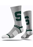 Product Details Product Details Sweat-Wicking FibersSelect Terry PadsPatented Heel StrapUnique Blend Of Technical YarnsDigital Ink Technology Printing20% Microfiber Polyester5% Blended Compression YarnMens shoes size 6-13, Womens shoe size 8-15POLYESTERMachine washableImported Officially Licensed Rally House has the perfect Michigan State Spartans Colorblock Mens Crew Socks to take your Spartans fandom to the next level! You'll be glad to wear these Crew Socks that feature a team logo.