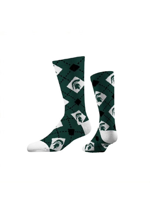 Product Details Product Details Sweat-Wicking FibersSelect Terry PadsPatented Heel StrapUnique Blend Of Technical YarnsDigital Ink Technology Printing20% Microfiber Polyester5% Blended Compression YarnMens shoes size 6-13, Womens shoe size 8-15POLYESTERMachine washableImported Officially Licensed Rally House has the perfect Michigan State Spartans Step and Repeat Mens Crew Socks to take your Spartans fandom to the next level! You'll be glad to wear these Crew Socks that feature a repeating team logo.