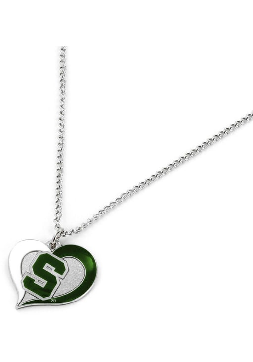Product Details Product Details Embellished with team colored logo pendantSecure clasp fit ensure carefree wearChains measures approximately 18-inches in LengthGreat for Game Day!100% MetalSurface washableImported Officially Licensed Make every outfit better with a touch of Spartans pride by getting this Michigan State Spartans Swirl Heart Womens Necklace from Rally House! You'll love wearing your Necklace, as it features a team logo and team color.