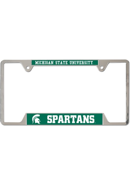 Product Details Product Details Fits any standard car license plate, front or backChrome plated cast zinc frameDecorated with two full color insertsTwo mounting holes on the top of the frameStandard 6"x12" sizeMETALUSA Officially Licensed This Spartans License Plate Holder features a Team color and team logo.