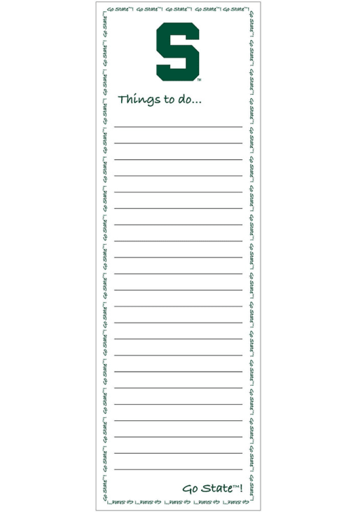 Product Details Product Details 2.75" x 8.5"50 sheetsMagnetic backTeam colors and graphicsGreat gift idea for any fan!Paper Officially Licensed Show your Spartans spirit at the office with this Michigan State Spartans To Do List Pad Notepad. This Notepad features a team logo on a to do list sheet.