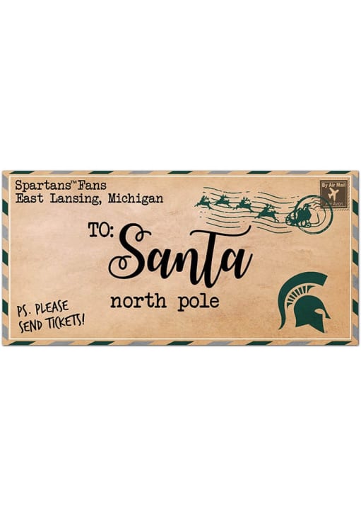 Product Details Product Details Digitally printedTeam colorsGreat for indoor home decorShow your team pride!Measures 6"x12"USA Officially Licensed This Michigan State Spartans To Santa Decor will make your home or office festive and ready for the holidays. This Decor features a team logo.