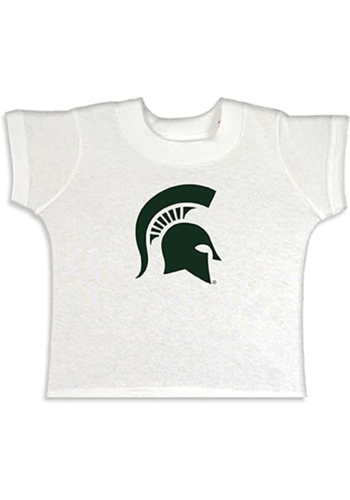 Your future Spartans will be ready to cheer in this Toddler Michigan State Spartans White Short Sleeve Tee. This Michigan State Spartans T-Shirt features a large screen print of Spartan helmet logo across chest.