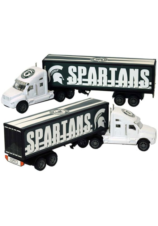 Product Details Product Details Approximetely 15"x4"Made of plasticFeatures team logo and team nameTeam color backgroundMakes for a great gift for any little fan!PLASTIC Officially Licensed Every young Spartans fan will love playing with this Michigan State Spartans WHITE SEMI TRUCK Toy Car. This Car features a mini white semi truck with Spartans and team logo.