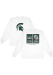 Show your Michigan State Spartans spirit in this MSU White T Shirt! This MSU Basketball Banners Long Sleeve T Shirt makes a great layer for cooler nights cheering on the Spartans. Featuring a screen print team graphic on front chest, this Michigan State Spartans Long Sleeve Tee is an essential addition for every fan. Go Spartans!