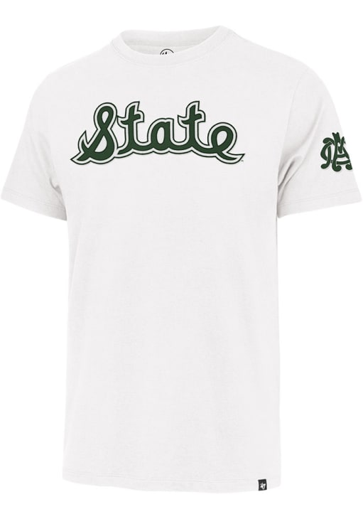 Support your Michigan State Spartans in this White Short Sleeve Fashion Tee! This Franklin Fieldhouse Collection Fashion T Shirt features a team wordmark applique on front chest with team logo applique on left sleeve. Be ready to yell "Go Spartans" when you wear this MSU Short Sleeve Fashion T Shirt in your favorite stadium or on the street.